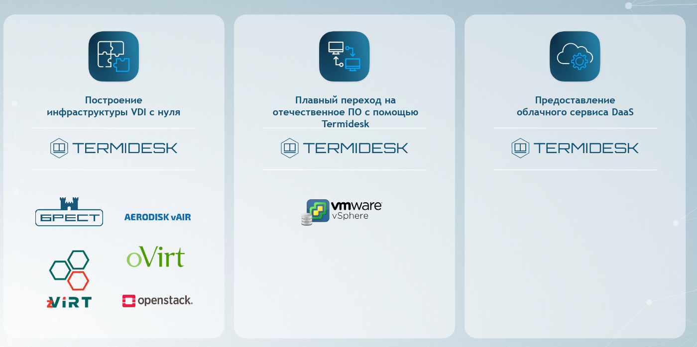 Termidesk VDI - подходит для систем виртуализации Astra Linux, VMware, oVirt и Openstack