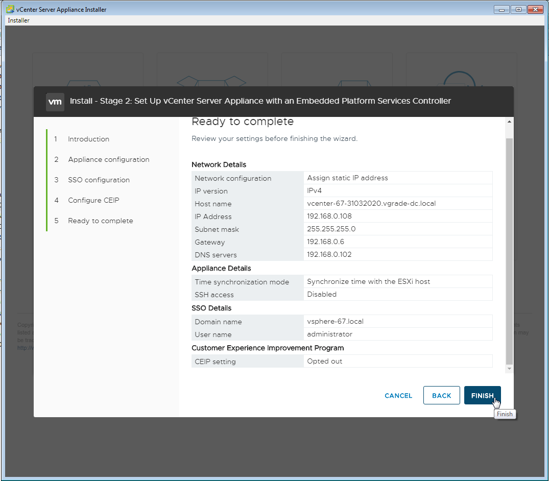 После того, как установка закончилась, переходим к конфигурированию vCenter.