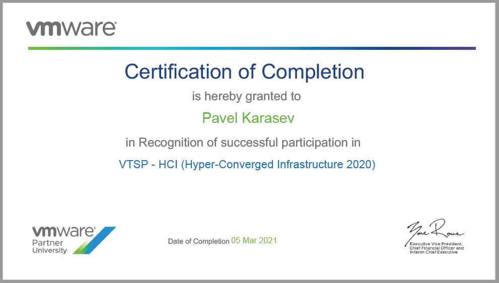 Компания V-GRADE (Progress-Media) получила компетенцию VMware HCI (Hyper-Converged Infrastructure).